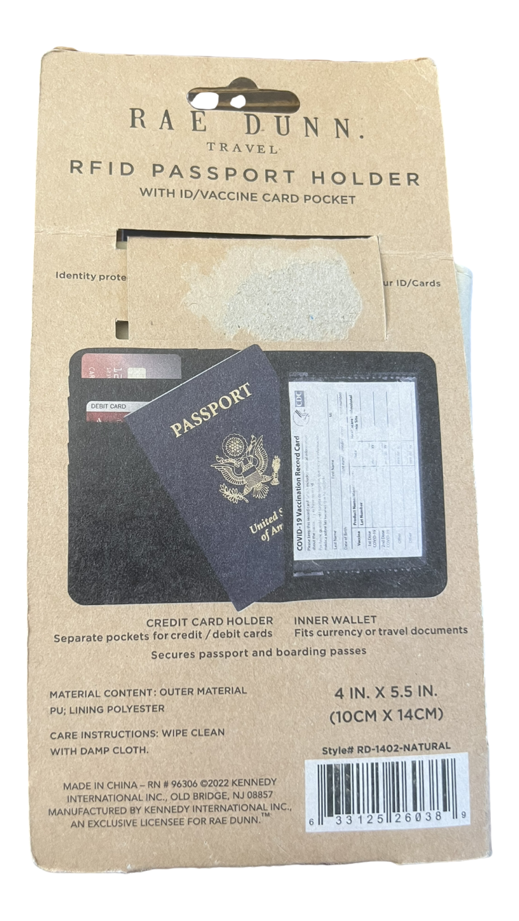 Keep your travel essentials organized and stylish with this Rae Dunn Passport Holder. This beige passport holder is made of high-quality PU material with a polyester lining, making it durable and long-lasting. It features an inner wallet and credit card holder to keep all your important documents in one place. The clear window allows easy viewing of your ID, while RFID protection ensures safety and security. Perfect for travel enthusiasts, this passport holder fits into the Passport & ID Holders, Travel Accessories, and Travel categories. Get your hands on this trendy Rae Dunn Travel accessory today!