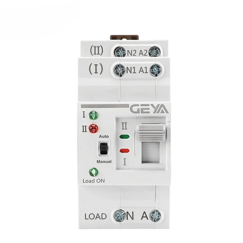 G2R Din Rail 2P 4P ATS Dual Power Automatic Transfer Switch Electrical Selector Switches Uninterrupted Power 25A 40 63A 110V/220V BEST ATS QUALITY IN ALIEXPRESS---SILVER CONTACT POINT & RED COPPER PARTS & STABLE RELAY CONTROL City Power ⇆ Generator G2R ATS Usage Precautions: 1. 220V ATS should not be used with a voltage lower than 185V, otherwise the coil may burn out. 2. 110V ATS should not be used with a voltage lower than 90V, otherwise the coil may burn out. 3. The switch cannot be manually switched when in automatic mode, otherwise the coil may burn out. 3. 4P ATS ensure correct connection of phase sequence,otherwise the contacts may burn out. General GEYA G2R-63 automatic transfer switch is a PC class infrequent change-over switch, with two-station design (commonly used for A and standby for B), suitable for AC systems with AC 50-60hz and rated current 6A-63A. The main function of the automatic transfer switch is when the main power (common power supply A) fails, the ATS will automatically switch to the backup power (Backup power supply B) to continue working (switching speed <50 milliseconds), which can effectively solve the troubles caused by power outages. When both A and B have electricity, priority is using A Power NOTE: 1. Manual/automatic operation can ensure the opening and closing performance of electrical operation, but in manual operation , there is no guarantee due to the different _opening/closing speeds of the operators. In manual operation, there's possible for excessive silver alloy loss . Therefore, the selector switch should only be pulled to the manual position after all power has been cut off for inspection and maintenance of the operating system and contact information. 2, Normally, pull the selector switch to the electric position. When manual operation is required, pull the selector switch to the manual position. After manual operation is complete, pull the selector switch from the manual position to the automatic position. The control circuit TSE is immediately energized. After the change over is completed, the internal switch will damage the coil in the control circuit, and the coil can work normally at 85%-110% of the rated operating voltage. Too low input voltage may cause the coil to overheat and burn out. Attention! When manual operation the mode selection switch must be in "manual" position