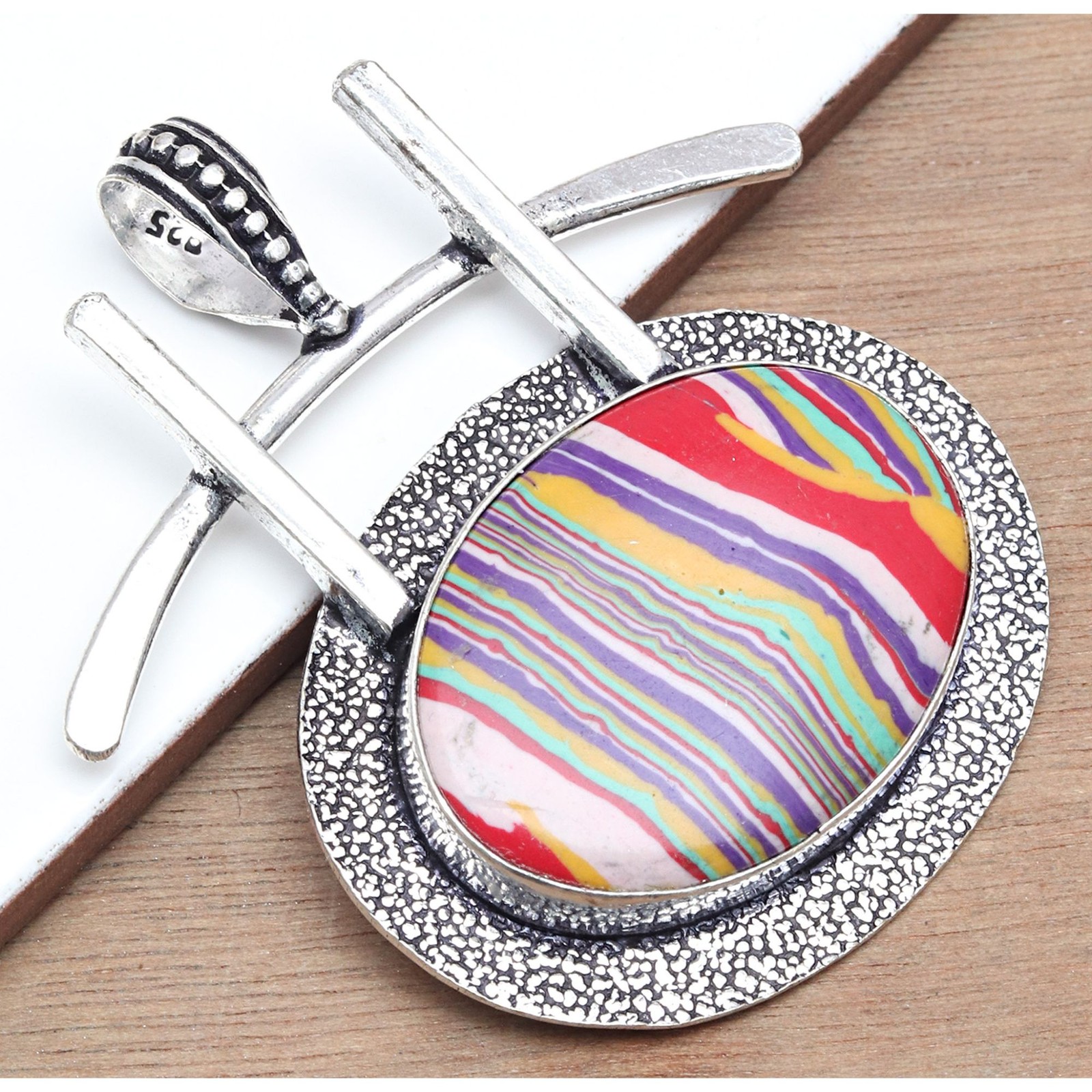 Rainbow Calsilica Gemstone Handmade Women's Unisex Silver Jewelry Pendant 2