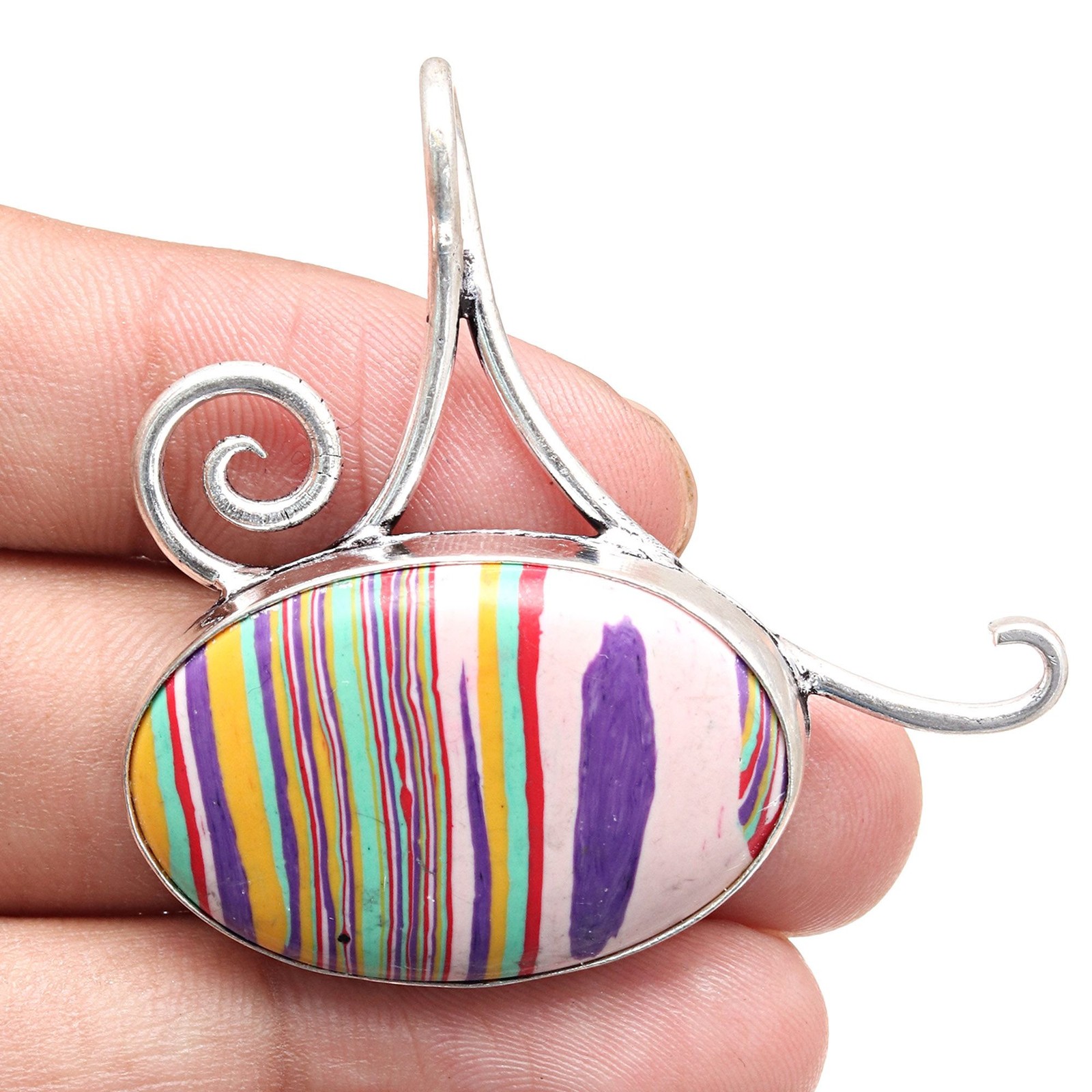 $ 3.8Rhodonite Gemstone Pendant Silver Jewelry Valentine's Day Gift 2.5 Inch