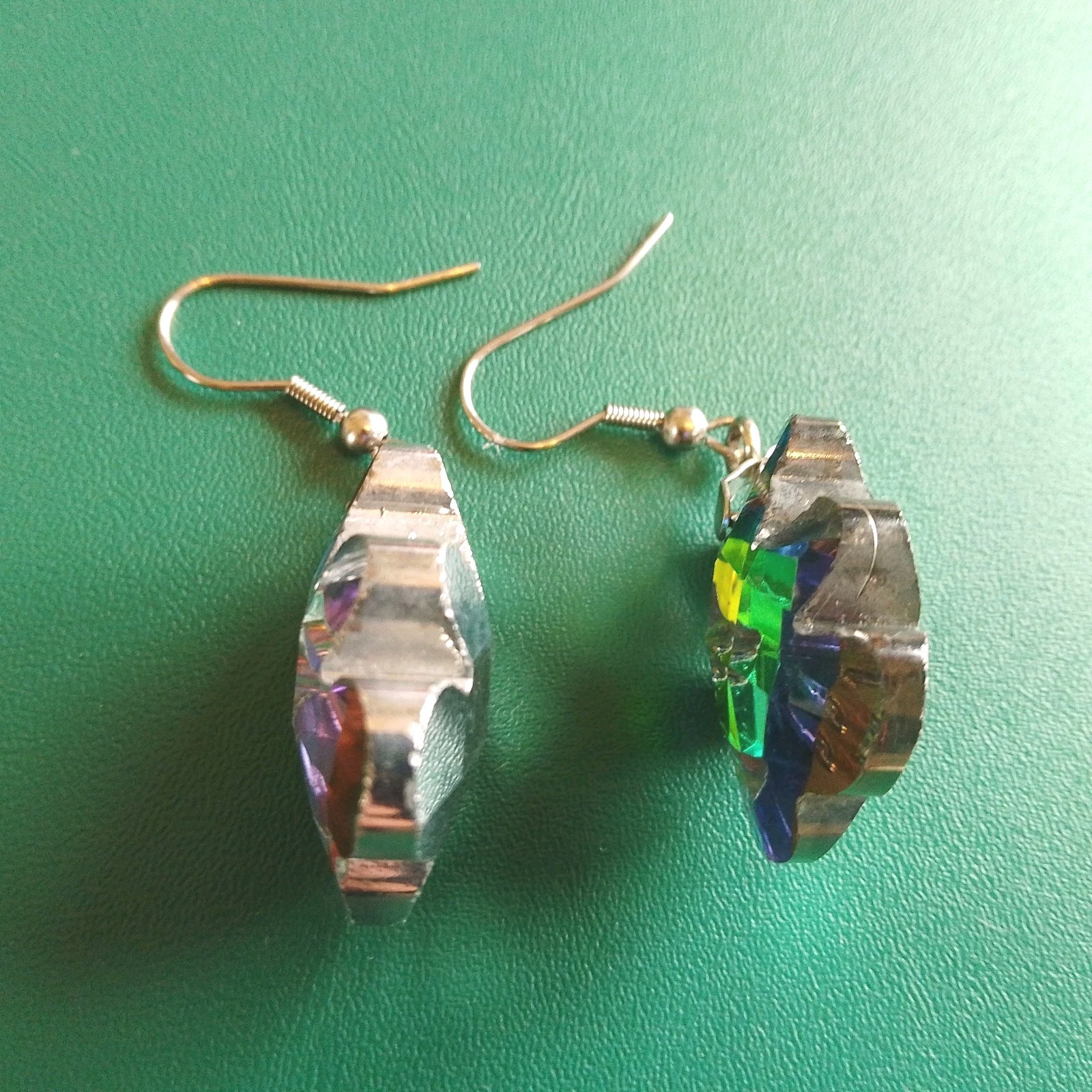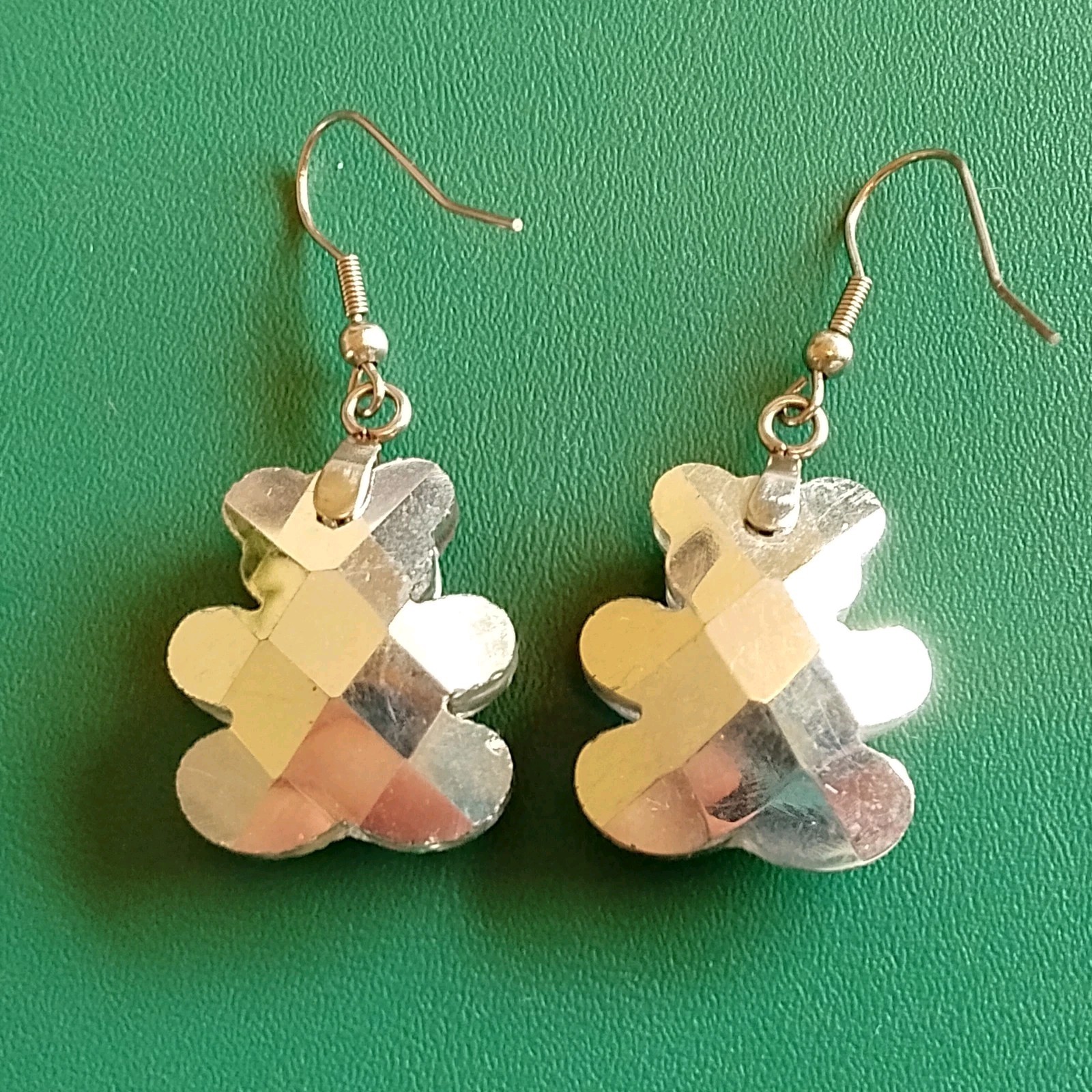Beautiful faceted teddy bear shaped rainbow effect drop earrings. Never worn!