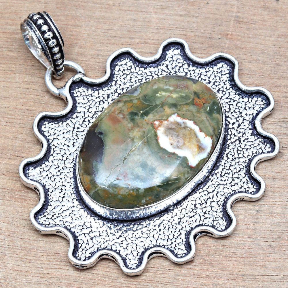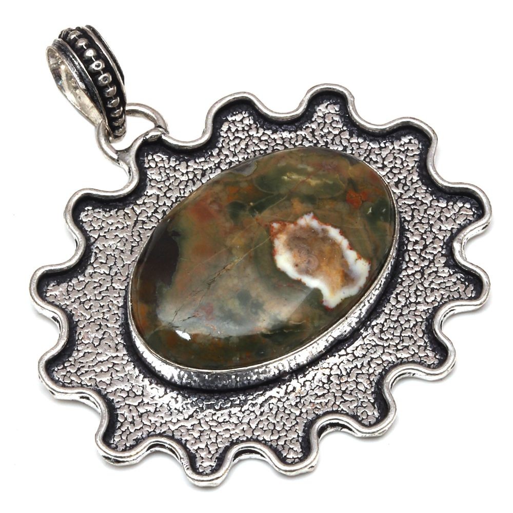 Colour: Green Pendant/Locket Type: Charm Country/Region of Manufacture: India Number of Gemstones: 1 Era: Undated UPC: does not apply Wholesale: Yes Base Metal: Brass Metal Purity: Unknown Secondary Stone: No Stone Main Stone Width: 25.4 Main Stone Shape: Oval Customized: No Metal: Silver Plated Material: Stone, Gemstone, Crystal, Cotton Type: Pendant Vintage: No Item Length: 2 in Brand: Unbranded Pendant Shape: Oval Main Stone Depth: 7 mm Main Stone Creation: Natural Country of Origin: India Handmade: Yes Setting Style: Bezel Gemstone Clarity Grade: Eye Clean Chain Type: Snake Necklace Length: 20 in Theme: Beauty, Bohemian, Ethnic, Family & Friends Main Stone Colour: Green Main Stone: Rainforest Jasper Cut Grade: Excellent Main Stone Color: Green Closure: Hook Style: Pendant, Locket, Chain, Tennis Remarks: We Are Manufacturer & Wholesaller Bulk Buy 10% OFF Main Stone Length: 19.05 Seller Warranty: No Customised: No Occasion: Anniversary, Birthday, Christmas, Engagement, Mother's Day, Valentine's Day, Wedding Features: Adjustable, Engraved, Stackable Main Stone Treatment: Not Enhanced Color: Green gtin13: does not apply Antique: Yes