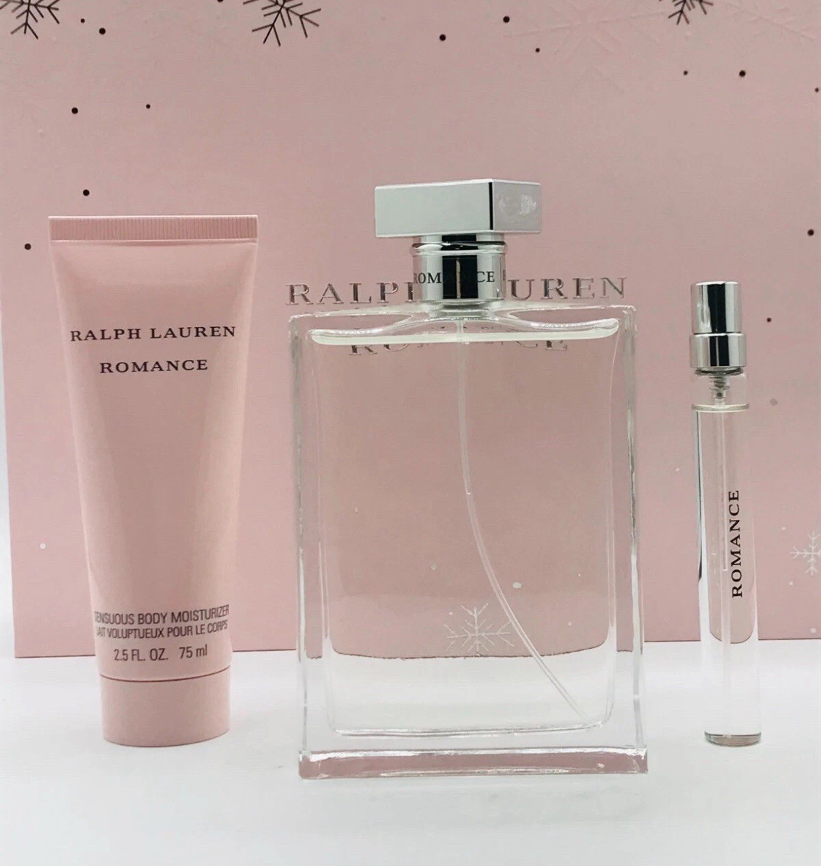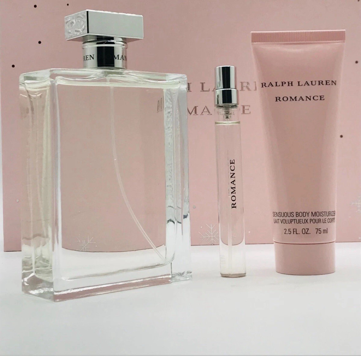 Ralph Lauren Romance 3pc Set Parfum Spray 5.1 oz Lotion 2.5 oz Travel Spray .34.