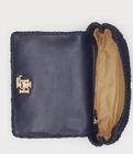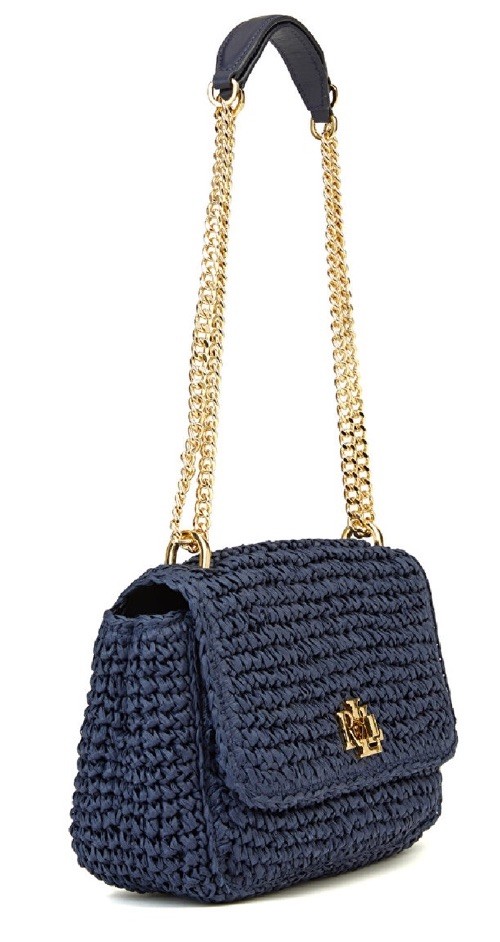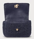 The Ralph Lauren Sophee 22 Woven Straw Shoulder/Crossbody Bag in Refined Navy is a stylish and versatile handbag perfect for various occasions such as parties, casual outings, or business meetings. With a turn lock closure, gold hardware, and an adjustable crossbody strap, this small-sized bag offers both convenience and security. The exterior features a woven refined navy leather material, while the interior includes inner pockets for organization. This designer bag comes with its original dust bag, making it a must-have accessory for any fashion-forward woman looking for a chic and functional handbag.