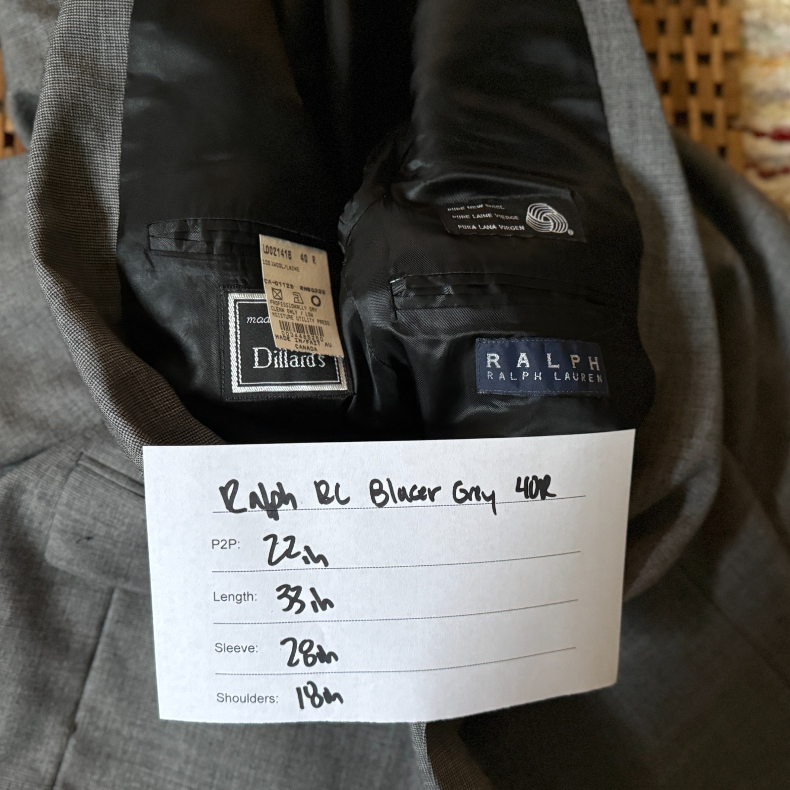 This Ralph Lauren Grey Wool Blazer Suit Jacket is a classic and stylish choice for any business occasion. Made from high-quality wool tweed fabric with a notch lapel and four-button sleeve button style, this jacket exudes a sophisticated and timeless look. The regular fit and two-piece design, along with inner pockets and a single vented back, make it a versatile piece suitable for the winter, fall, and spring seasons. Perfect for men who appreciate quality and style in their wardrobe choices.
