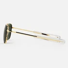 The Aviator, our top-selling icon style, in 23k Gold with premium AGX glass lenses. Now available in XL. Engineered to military specs, designed and handcrafted in the USA. 23k Gold Jewelry Quality frame finish. AGX - This ‘relaxing’ green lens selectively highlights the soothing green/yellow wavelengths of the light spectrum to reduce eye fatigue and improve visual performance. Polarized - glare prevention with UVA/UVB protection. SkyTec™ Glass Polarized lenses with Vector™ Anti-Reflective & Blue Wave™ lens technology. Clear Bayonet Temple Tips specially designed for comfort under headgear. Designed & Handcrafted in the USA in over 200 steps. Embossed Hard Case & Microfiber Pouch