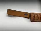 The product is a Rapala J. Marttiini fillet knife made in Finland with a stainless steel blade and a wood handle. It comes with a leather sheath for storage and has a trailing point blade edge. This fillet knife is designed for fishing use and is over 5 inches in length. It features an encapsulated tang for durability and is suitable for both left-handed and right-handed users.