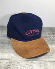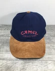 Up for sale is a good condition, Vintage Rare Camel Collection Suede Wool Baseball Cap Hat With Strap Back. Suede bill. Wool upper. Strap back.