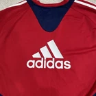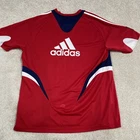 The product is a rare Chicago Fire 2009 training football jersey in size XXL. It is a solid red jersey with short sleeves, suitable for activewear occasions. Made by adidas, this regular fit jersey features a logo accent, making it ideal for soccer and football activities. The jersey is machine washable and not vintage, perfect for a collector or a fan looking to add a unique piece to their wardrobe.
