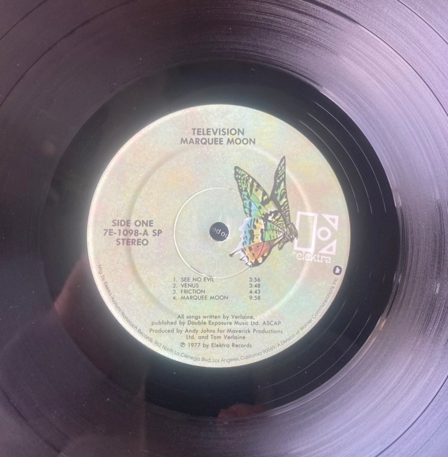 The debut album by Television released to great acclaim on Elektra Records (7E-1098). This comes with the original inner sleeve with lyrics and photo. This includes See No Evil and Elevation. The record is NM- tiny bit of discoloration on one side and the cover is VG+ with some edge wear and a 1/4" drill hole top opening corner. All grading is guaranteed to visual Goldmine standards (see my feedback) unless otherwise specifically described . Price includes delivery confirmation and/or insurance(78s) domestic. Priority mail and professional packaging is $12.00, additional 45s, up to four, are free domestically. I ship three times a week. Important - media mail may take up to two weeks for delivery!!! Insurance is included on purchases of $50.00 or more. Sorry about the increase in international mail but the post office now charges me an average of $25.00 for one single LP - that does not consider the cost of the mailer, bubble wrap, and labels. Insurance and/or tracking for international sales is available at a much greater shipping cost (required for Portugal). The only way I can absolutely guarantee delivery internationally is with a tracking number or insurance. Import duties, taxes and charges are not included in the item price or shipping charges. These charges are the buyer’s responsibility. Please check with your country’s customs office to determine what these additional costs will be prior to bidding/buying. International shipping via first class can take a month or more from the shipping date - we have no control over shipping time. Please do not ask us to lie about record values on customs forms. I am listing some rare classic and punk rock, rare 45s, and some other rarities the next couple of days. Remember if you are looking for the weird, the wacky, and the wonderful, check the Cassidy Collectibles auctions or come see us at a record show near your location. Buying my records feeds your vinyl addiction and my two sets of sisters that are new comers to Casa de Smith.