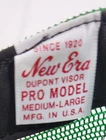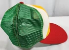 This rare vintage New Era Pro Model Trucker Mesh Hat is a must-have for any 90s enthusiast. Made in the USA, this hat features a unique green, white, red, and yellow color scheme that is sure to turn heads. The medium/large size and trucker hat style make it a comfortable and stylish accessory for any occasion. The hat is perfect for men who want to add a touch of vintage flair to their wardrobe. The brand New Era is known for their high-quality hats, and this one is no exception. Whether you're looking to complete a 90s-themed costume or just want to add a unique piece to your collection, this hat is sure to impress.