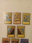 You are getting the 5 pieces of exodia japanese cards pg61 62 63 64 and 65. Very good condition. Left leg has some minor blemishes on front of card. Head and two arm cards are slightly warped/bent out of shape. Also included is the 3 egyptian god cards. Two of them are the japanese g4 1 and g4 3 and obelisk the tormentor is English version gb 002. Obelisk has a significant corner crease. Other two have very minor corner creases. Plastic sleeves that cards are in have some minor damage to them as well. Flaws are shown in photos. Ships with usps ground advantage within two business days. Feel free to contact me with any questions or offers.