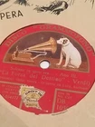 Disco a 78 giri "La Voce del Padrone" (His Master's Voice), un oggetto da collezione con l'iconico logo del cane Nipper che ascolta un grammofono. Il disco presenta un duetto in italiano di "O Mimi, tu più non torni..." dall'Atto IV de La Bohème di Giacomo Puccini e dall'altro lato " Solenne in quest'ora " da La Forza del Destino di Verdi Gli artisti sono i rinomati cantanti lirici Beniamino Gigli (tenore) e Giuseppe De Luca (baritono). Il numero di catalogo del disco è DB 1050 e il numero di matrice è 2-054178. Il logo raffigura un Jack Russell Terrier di nome Nipper, che apparteneva al fratello del pittore Francis Barraud.