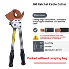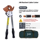 Cable cutter J40A ratchet gear cable scissors cable cutter wire cutter cable cutter cable cutter disconnecting pliers weights:1/1.1KG Feature: 1. Using the principle of mechanical force increase, the handle is pushed to push the gear to achieve the function of cutting the cable. 2. Forged blade is with long life, easy to cut, easy to trip for retracting in the operation. 3. Such tool's blade cutting is light and labor-saving, easy to carry, and the blade can be repaired, easy to replace. 4. Wire cutter is made of materials in high quality, entitled with high performance according to strict rule. 5. Via many inspections, the quality is guaranteed, you can use such a tool with confidence. Parameter: Item Type: Wire Cutter Blade Material: Manganese Steel Cutting Range: <300mm² Copper and Aluminum Armored Cable Packing List: 1 x J40A Wire Cutter
