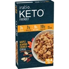 Ratio Maple Almond Crunch Cereal, 10g Protein, Keto 10.4 Ounce (Pack of 1) Product Details Product Dimensions : 1.9 x 6.3 x 11.3 inches; 10.4 ounces UPC : 016000188648 Manufacturer : GENERAL MILLS SALES INC. Brand: :ratio Flavor: Maple Almond Age Range (Description): Adult Specialty: Low Carb Unit Count: 10.4 Ounce MAPLE ALMOND CRUNCH: Crunch into perfectly balanced :ratio Breakfast Cereal, made with delicious ingredients designed to keep you on track including naturally flavored maple cereal squares, nutty clusters and sliced almonds 10G PROTEIN PER SERVING: Each serving strikes a unique balance of protein, net carbs and sugar to support a low carb lifestyle MINDFUL MACROS: 7g total fat (includes 1g sat. fat), 9g net carbs, 3g sugar and 140 calories per serving; 9g net carbs = 19g total carbs – 3g fiber – 7g sugar alcohol; See nutrition information for calories, total fat and sat. fat content BREAKFAST FOOD OR SNACK: Serve ratio Cereal with or without milk as part of a quick breakfast or crispy on the go snack CONTAINS: One 10.4 oz cereal box of :ratio Keto Friendly Maple Almond Crunch Cereal; Always consult your physician before starting an eating plan that involves regular consumption of high-fat foods Discover the protein you crave in breakfast food inside every box of :ratio Keto Friendly Maple Almond Crunch Cereal. Made with delicious ingredients designed to keep you on track, crunch into this perfectly balanced mix of maple flavored cereal squares, nutty clusters, sliced almonds, pumpkin seeds, and other carefully selected ingredients. Each serving of maple flavored cereal provides 10g of protein, 7g of total fat, 9g net carbs† and 3g of sugar per serving. Managing net carbs as part of a low carb lifestyle? Consider that this product contains 9g net carbs† per serving. Keep a cereal box handy for times you want a quick protein snack. Sprinkle some of this nut cereal in our ratio Protein Yogurt Cultured Dairy Snacks or Greek yogurt. Pack a serving of this maple cereal in a small bag as part of breakfast to go. Have a bowl of cold cereal with dairy or nut milk for an anytime snack. Add some to homemade snack mix or yogurt parfait recipes for tasty individual snacks. A 10.4-ounce cereal box contains about 7 servings of maple almond cereal. Whether you want a protein cereal or crunchy, flavorful snack between meetings and errands, General Mills cereals spread goodness from tots to grown-ups. Always consult your physician before starting an eating plan that involves the regular consumption of high fat foods. Includes 1g saturated fat. See nutrition information for calories, total fat and saturated fat content. 9g net carbs = 19g total carbs – 3g fiber – 7g sugar alcohol.
