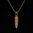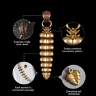 Type: Fidget Pendant Inspiration: Rattlesnake Material: Copper & Brass Length: 60.45 mm / 2.4 inches Width: 13.46 mm / 0.5 inches Thickness: 5 mm / 0.2 inches Weight: 0.58 ounces / 16.4 g INSPIRATION The Rattlesnake tail pendant, a unique and captivating piece inspired by the courage and fighting spirit of the rattlesnake. The pendant features ten segments of snake tail, which are meticulously welded together to create a mesmerizing swinging motion that produces a distinct sound, mimicking the real rattlesnake tail. This distinctive feature captures the essence of this mighty reptile and sets this pendant apart from all others. Crafted from the highest quality materials, the Brass Rattlesnake Tail Pendant showcases intricate details of the snake scales on the hanging buckle and upper part of the pendant, inspired by the bones of the snake. This stunning piece highlights the artisanal skill that went into its creation, making it an exceptional addition to any jewelry collection. Handcrafted with care and attention to detail, this pendant captures the essence of this mighty reptile with its unique design, intricate details, and distinct sound. No matter the version you choose, this pendant is an excellent addition to any collection or wardrobe. Perfect for gift-giving or as a cherished addition to any collection, this pendant will be treasured for years to come as a symbol of strength and resilience. Order yours today and experience the magic of this extraordinary piece for yourself.