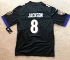 Gear up young fan! This new-with-tags Ravens Jackson youth jersey is perfect for showing your team pride. Crafted with care, it features bold team patches without any printing, capturing the essence of the game. It's ready to ship tomorrow, so you can wear it to the next game or gift it to a fellow Baltimore Ravens admirer.