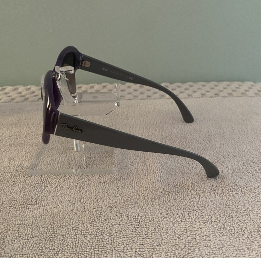 Ray-Ban Cat-Eye Sunglasses RB 4198 6046/71 55-18 3N blend timeless design with modern flair, featuring purple and gray plastic frames that exude a classic yet American designer appeal. The iconic cat-eye style is enhanced by the gradient lens technology, providing a stylish look that complements a variety of face shapes.Crafted in Italy, these sunglasses boast lightweight construction for comfortable wear, with UV400 protection to shield your eyes from harmful rays. The solid pattern and sleek temple length of 135mm ensure a secure and flattering fit, making them a versatile addition to any wardrobe.-M