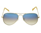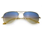 Ray-Ban Sunglasses RB3025 Aviator Gradient Gold Frame Light Blue Lenses 58mm Model Number: RB3025 Color Number: 001/3F Style: Aviator Gradient Frame Material: Metal Frame Color: Polished Gold Lenses: Light Blue Gradient Shape: Pilot Size Lens-Bridge: 58 - 14 (Standard Size) Temple Length: 135mm UPC: 0805289307662 Experience ultimate eye protection and vision clarity with Ray-Ban sunglasses. Ray-Ban sunglasses are designed to meet your unique vision needs and are certified with an engraved Ray-Ban signature on the right lens, and the iconic RB initials on the left. Our lenses provide 100% UV protection that not only keep harmful glare and reflections at bay, but also protect your eyes from the sun rays. Trust Ray-Ban to provide superior eye protection and a style that truly reflects your personality. Package Includes: 1X Ray-Ban cleaning cloth 2X Ray-Ban booklet 1X Ray-Ban case 1X Ray-Ban box 1X Protect outer box 1X Mini Screwdriver Repair Tool (*In selected models only) G.W: 300g/Pair The product is shipped by USPS within 1-2 business days and arrives at destination after 2-8 business days