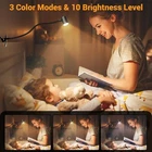 Specification: Working Voltage and current: DC 5V 500mA-1A Lighting Modes: 3 color lighting modes ( Cool White/Warm White/Daylight lighting ) Light Source: LED lighting source Working Temperature: less than 113℉ Color Temperature: 3000-6500K Material: Aluminum/ABS/PVC Working Power: 5W Power Cord: 1.5M Max Height: Up to 40cm Weight: 350g 💡 3 Colors Dimmable Clamp Light - Clip on lamp has 3 color, 3000K, 4500K, 6500K. Each mode has 10 levels of brightness adjustable, whether day or night, will meet all your lighting requirements, perfect for reading, working, learning. 💡 Eye Caring Bed Light - Evenly distributed LED lamp beads, not flashing not dazzling, block 99.99% blue light, so that your eyes will not be tired even under the light for a long time, very suitable for reading in bed before going to bed. 💡 Memory Function - When turned on again, reading light for bed will be in the same mode as when you turned it off last time. No need to re-adjust your light each time, it can automatically capture your lighting preference. 💡 360° Adjustable Gooseneck Lamp - Reading lamps for bed comes with a flexible gooseneck tube made of quality aluminum alloy. The neck is tough and can be flexibly bent 360 degrees. It can be easily adjusted to the most comfortable Angle for the best reading effect.