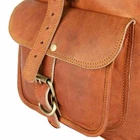 100% genuine goat leather messenger bag with a durable inner lining made of canvas. Designed to carry mini laptops, tab, documents or other personal belongings, etc. A genuine hand made product using chemical/dye-free leather. Natural oils and light have been used to obtain the style of the leather - chemical free! This bag features a wonderful unique and vintage look, designed to carry mini laptops, tab, documents, personal belongings etc. Perfect for the office, school or as a gift! Specifications: Made from 100% genuine, strong, lightweight, durable goat leather, tanned without the use of chemicals Adjustable shoulder strap, roll close backpack with small 2 front pocket and 2 side pocket 1 big inner compartment for carrying files, mini laptop's, tab's etc Inner canvas lining Vintage leather wash Leather softens and darkens with use Handmade in India by experienced crafts people.
