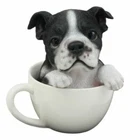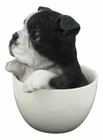 • This Realistic Boston Terrier Tea Cup Figurine is approximately 5.75" tall and 5.25" long and 4.25" deep. It is designed to set on flat surface. • This Realistic Boston Terrier Tea Cup Figurine is made of resin, hand painted and polished individually by our artisans. The Statue is furnished with glass eyes material, making it look like a real dog and his body is textured to give it a bold detailed feel. Color Tone may vary from pictures. • This Realistic Boston Terrier Tea Cup Figurine is a perfect decor for any home as well as a beautiful gift for a loved one! • Boston Terriers have been popular since their creation a little more than a century ago. They were originally bred to be fighting dogs, but today, they're gentle, affectionate companions with tuxedo-like markings that earned them the nickname "American Gentleman." • This is an Ebros Gift exclusive collection. Ebros Realistic Boston Terrier Teacup Statue Pet Pal Tuxedo Gentleman Dog Figurine Video will open in a new window Using the mobile app? Copy this link into your browser: