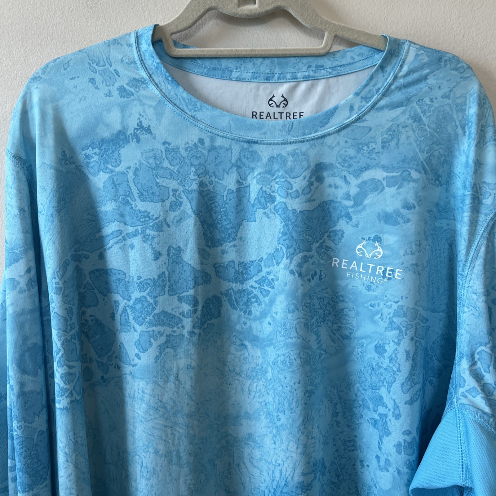 Realtree Wav3 Camo Light Blue Men’s 3XL Long Sleeve Performance Fishing Tee EUC-see photos for full description Measurement approximately: PTP - 28in. Overall length – 33in Ship’s next day Monday through Friday Offers always welcomed and considered