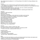 Product Description Rear Differential Assembly 41:11 3.727 Gear Ratio 41110-3D551 For Toyota 4Runner 4.0L 2003-2009 Feature: 1: According to the original factory specifications,perfect match for the original car. 2: Own different test machines to design exact accurate parameter for our products.All items were tested for performance. 3: Made by high quality material, lightweight, anti-rust, colorfast and durable. 4: Aftermarket product with premium quality. 5: Stable performance, high reliability,suitable for replacing your broken one. Specifics: Condition: 100% Brand New Material: Metal Color:show as pictures Manufacturer Part Number: 42181-60130,41110-3D551,42181-60120, 41110-60A01,4218160130,411103D551, 4218160120,4111060A01 Interchange Part Number: 41110-3D551 Other Part Number: 41110-3D551 Type: Differential Assembly Placement on Vehicle:Rear Carrier Bearing Included: No Engine & Transmission: 4.0L Gear Ratio: 41:11 = 3.727 Gear Ratio Fitment Type: Direct Replacement Fitment: For Toyota 4Runner 4WD 4.0L 4WD 2003-2009 For Toyota FJ Cruiser 6 Cyl 4.0L w/ Automatic Transmission 2007 ***If you are not sure,please provide vin for us! Package Include: 1x Rear Differential Assy (show as pictures) [* Instruction is Not included!] (Strictly Tested , High Quality Products) Note: 1.Please check the description or use the year/make/model check finder and replace part numbers to confirm the compatibility before purchasing. 2.Professional installation is recommended. ⚠ COMPATIBILITY WARNING • DO NOT GUESS FITMENT • Verify [Year][Make][Model][Engine][Submodel] • Cross-check OEM#: [XXX-XXX-XXX] ♦Need Help? Send: 1:VIN (17-digit) 2:Original part photos 3:Your vehicle specs SHIPPING & HANDLING RETURNS WARRANTY FEEDBACK ♦Every item will be inspected and packed carefully before shipping. ♦Processing Time: shipped within 3 business days (Mon-Fri, excludes holidays) ♦Estimated delivery time : 3-5 business days . ♦Tracking Info: Provided automatically via eBay. ♦All orders will be shipped through USPS First Class, UPS and Fedex depends on the weight of the items. ♦ Fast & Reliable Shipping – Your order is our priority! 🌍 Ships from U.S. Warehouse – No long waits! 📦 Standard Shipping (Free): 3-5 business days (U.S. only). 🔸 60-Day Hassle-Free Return Policy We offer 60-day free returns for your peace of mind. To ensure a smooth process, please contact us first before opening a return request—we’ll gladly help resolve any issues! 🔸 Return Requirements: ✅ Unused & in original packaging ✅ Contact us immediately if the item is defective/damaged (photos/video required) ✅ Repack securely to prevent shipping damage ⚠️ Important Notes: • If returning due to change of mind, please select: "Changed mind" or "Didn't like item" Defective/damaged items? Contact us immediately with photos/video proof • Incorrect return reasons (e.g., falsely claiming "defective") may result in a refused refund. 🔸 Return Process: Contact us → We’ll provide return instructions. Ship the item back with tracking (recommended). We inspect returns within 3-5 business days. Approved refunds are issued to your original payment method (processing time varies by bank). 🔸 Need Help? Message Us First! We’re happy to offer alternative solutions, including replacements or discounts, before you proceed with a return. Your satisfaction is our top priority! �� 🔸 Covered Products: All parts sold in our store (warranty duration varies by item - see product description) ⏳ Warranty Period: • Standard Parts: 180_days • Wear Items: 60 days 🔸 What's Covered: ✓ Manufacturing defects ✓ Material failures under normal use ✖ What's Not Covered: ✗ Installation errors ✗ Physical damage (drops, accidents) ✗ Unauthorized modifications ✗ Normal wear & tear Claim Process: Contact us via eBay Messages within warranty period Clear photos/video of the issue We respond within 24-48 hours with solution 🔸 Feedback & Satisfaction Policy Your 5-Star Reviews Help Us Grow! We're committed to your complete satisfaction. When you receive your item and are happy: ✅ Please consider leaving positive feedback about your experience ✅ Share what you loved (fast shipping? great packaging? accurate description?) 🔸Our Promise to You: ✔ 100% satisfaction guarantee - we stand behind our products ✔ Open, honest, and timely communication ✔ Always respond within 24 hours to any concerns 🔸 Before Leaving Feedback: • Contact us first if anything is less than perfect • Allow us to make it right (replacement/refund/store credit) • Negative feedback won't solve issues - but we will! 🔸Important Notes: • Feedback about shipping carriers should go to their official channels • eBay cases opened without contacting us first void satisfaction guarantees We value your voice - let's work together for a great eBay experience! SHIPPING & HANDLING ♦Every item will be inspected and packed carefully before shipping. ♦Processing Time: shipped within 3 business days (Mon-Fri, excludes holidays) ♦Estimated delivery time : 3-5 business days . ♦Tracking Info: Provided automatically via eBay. ♦All orders will be shipped through USPS First Class, UPS and Fedex depends on the weight of the items. ♦ Fast & Reliable Shipping – Your order is our priority! 🌍 Ships from U.S. Warehouse – No long waits! 📦 Standard Shipping (Free): 3-5 business days (U.S. only). RETURNS 🔸 60-Day Hassle-Free Return Policy We offer 60-day free returns for your peace of mind. To ensure a smooth process, please contact us first before opening a return request—we’ll gladly help resolve any issues! 🔸 Return Requirements: ✅ Unused & in original packaging ✅ Contact us immediately if the item is defective/damaged (photos/video required) ✅ Repack securely to prevent shipping damage ⚠️ Important Notes: • If returning due to change of mind, please select: "Changed mind" or "Didn't like item
