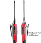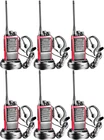 Small and convenient size;it easily fits on your hand;it measures 4.3 inches in height;1 inch thick;2 inches in width;5.5 oz light-weighted;solid built; easy to operate for all ages;each radio has a removable belt clip; FCC ID: 2ARTCARAR 16 channels;each radio has identical frequency on each of the 16 channels out of the box;16 position mechanical rotary switch channel selector;when you turn the knob to change the channel,a synthesized voice will tell you the channel number Each radio comes with a 1500mAh rechargeable Li-ion battery and a charging dock; the charger comes with an AC wall-wart Type A plug and works in 110v-240v; it takes about 2.5 hours to fully charge; battery life is determined by transmit time;it lasts around 8 to 96 hours on a single charge depending on how much you transmit;you can charge the battery alone or charge the radio with battery installed; AR-6 has a USB Type-C charging port now High quality built-in speaker on the radio provides loud and crystal clear sound; Push-to Talk button and built-in mic on the radio;each radio comes with a single-earbud style earpiece(foam piece included) with a microphone built in and a Push-to-Talk button; earpiece plug is K-type of 3.5mm plug and 2.5mm plug;when you plug in the earpiece,all sound goes to the earpiece and the radio speaker is silent;the radio has a VOX function Range is very dependant on terrain;up to 5 miles with no obstructions,less in congested area;work great in a commercial construction or around the house;suitable for security team;maintenance team;construction team;warehouse;factory;kitchen staff;hotel;retail store;at the school;events communications;roadtrip while driving in different cars;family camping and hunting;on a cruise ship;in mountains;it works worldwide;you can add as many as you want and they work great together