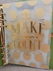 This Recollections Creative Year Make Today Count Binder Planner in Apple Green is a must-have for anyone who wants to stay organized and look good doing it. The binder is designed with a six-ring binder format and made of high-quality faux leather material, making it durable and long-lasting. It will hold a calendar refill that is A5 6-ring binder planner insert 8 1/4 x 5 5/8". It includes three tab dividers and 31 planning sheets, making it perfect for both personal and professional use. The monthly extended sheet (see pic) needs reinforced hole stickers for the holes on the page. The planner is medium-sized, making it easy to carry around, and the green color adds a pop of color to your everyday look.