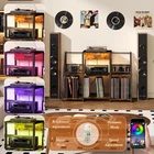 【Easy Assembly & Customer Service】 The whole item is very easy to put together and takes less than a half hour. We strive to make your experience as convenient as possible, each component is clearly numbered, and you can effortlessly follow the illustrated steps to assemble it.if you have any problems, please be free to contact us, we will response to you in 24 hours. 【Large Capacity Vinyl Record Storage】Featuring a spacious three-tiered shelf design and two dedicated vinyl display holders, our record cabinet offers storage for up to 300 albums. You'll find practical top and middle surfaces perfect for audio equipment placement or displaying decorative items, books, and media accessories. Combines functional storage with sleek presentation for collectors and vinyl lovers alike. 【Record Player Stand with Power Outlet and USB Port】The vinyl record storage device is equipped with 2 standard sockets and 2 USB ports. eliminating bulky power strips while powering your turntable and devices. A short LED strip comes attached to the bottom of the top shelf and can be controlled with a supplied remote controller which provides several lighting options. Unique lighting enhances your space with stylish ambiance, blending functional design with romantic aesthetics. 【With Adjustable Record Holder】The footpads of the unit can be individually adjusted which is important for turntable users since the turntable should be level. Come with 3 dividers, and pre-drilled 8 holes, You have the freedom to customize the width of the slots according to your preferences. Arrange your vinyl records by music genre, artist, or era, creating a personalized organization system that suits your needs. 【Sturdy and Beautiful】The vinyl record storage stand is designed with MDF board and coated metal iron tubing for durability and ease of cleaning. Mid-century modern design elegantly displays your collection, while showcasing album art adds an artistic ambiance to your music corner. 【Multifunctional Record Holder Stand】Except for being a record player cabinet with vinyl storage, this vinyl storage organizer also can be used as a magazine rack, a bookshelf with display, an audio rack, a stereo cabinet, a media shelf stand, an av rack. Perfect for any room, whether it's your living room, bedroom, or home office, this piece serves as a hub for your entertainment needs. 【Easy Assembly & Customer Service】This vinyl record storage measures 46.1''W*15''D*30.5''H.We strive to make your experience as convenient as possible, each component is clearly numbered, and you can effortlessly follow the illustrated steps to assemble it. If you have any questions or require support during the assembly process, please don't hesitate to reach out to us. Our dedicated team is here to assist you and provide prompt solutions.