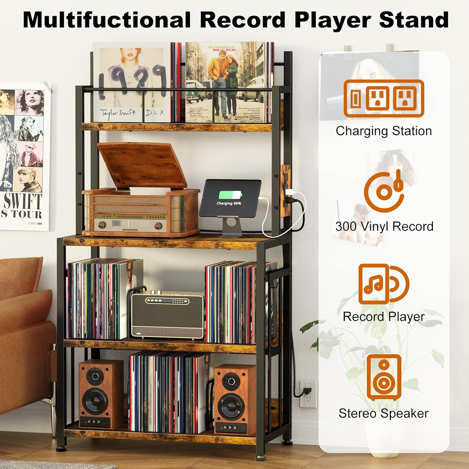 Store New Arrivals Add to Favorite View Feedback Contact Record Player Stand with Vinyl Storage, Turntable Stand Holds up to 300 Albums, Large Record Player Table with Charge Station, Vinyl Record Stand for Living Room Product Information Style Vintage Number of Items 1 Country of Origin China Material Cambination of iron and wood Mounting Type Freestanding Room Type Living Room, Bedroom Weight capacity Maximum weight: 100 Pounds Assembly Required Yes Product Dimensions 14.17"D x 27.17"W x 58.39"H Installation Type Freestanding Age Range (Description) Adult Finish Type Varnished Specific Uses For Product Vinyl Records, Record Player Included Components Vinyl rack Shelf Type Multi-tier Bookcase Shape Rectangular Product Name record player stand Item Weight 27.6 pounds Number of Shelves 4 Special Feature Durable USEHOLD, Adjustable Weight Limit 100 Pounds Color Brown Furniture Finish NO (Wood component) and NA (Metal component) Recommended Uses For Product Living Room, Bedroom Product Care Instructions Wipe with Dry Cloth Size 14.17"D x 27.17"W x 58.39"H ABOUT US We are proud to be based in the United States, with all of our products shipping directly from within the country. Our selection includes home décor, furniture, sports equipment, tools, pet products, and more. If you have any questions about our products, we’re always happy to help. SHIPPING We are always working hard to ensure your package arrives as soon as possible. Please understand that some factors like weather, high postal traffic, and the performance of shipping companies are outside of our control. We offer free shipping to the lower 48 states and ship within 2 business days of payment, usually sooner. For shipping outside of the continental USA, we only use eBay's Global Shipping Program. The item is shipped to IL and then sent to the rest of the world. RETURNS We offer Free Returns for 30-Days on items which you are not completely satisfied with. You have the option for a full-refund or an exchange of the item. CUSTOMER SATISFACTION We try our very best to make sure every customer is completely satisfied. If there's a problem, message us! We're happy to help.