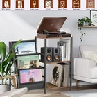 The record cabinet is multifunctional for storing records, magazines, books, CDs, brochures and newspapers, and the wooden stand can also be used to hold acoustics, decorations or other favorite items. A great gift for anyone who loves vinyl records. 【Sturdy Vinyl Records Player table】 The 3 Tier End Table top wooden panel is thick and stable structure,providing strong load-bearing capacity, exquisite workmanship,and its smooth surface is easy to clean with a simple wipe of a cloth,Vinyl Records Player Stand using highly durable steel and beautifully powder-coated, and ensuring enduring quality . 【Multi-function Record Player Stand】On the top of turntable stand for Vinyl, it is suitable for various sizes of record players,The middle layer and bottom space is enough for vinyl record storage and others,The deep pockets of the display shelf are perfect for holding your beloved LP, albums,magazines ,periodical book,CDs and collections. 【Fit For Various Scenarios】 The record table can be used not only as a vinyl record organizer cabinet, but also as a wide magazine rack in the office, Music Room, study or wherever else reading material is needed,Brown Records Shelf for Living Room Bedroom while also catering to all your personal artistic preferences. 【Unique style】End Table for Vinyl Records Crafted with an open design,plus a natural wood-grain finish and the soft oxford fabric with subtly textured feel and mid-century modern appearance for simple yet fashionable charm in any room. 【Easy to Assemble】 The Record Player Stand includes clear instructions and labeled parts,along with installation tools for a smooth setup.If you have any questions during use,don’t hesitate to reach out for assistance.