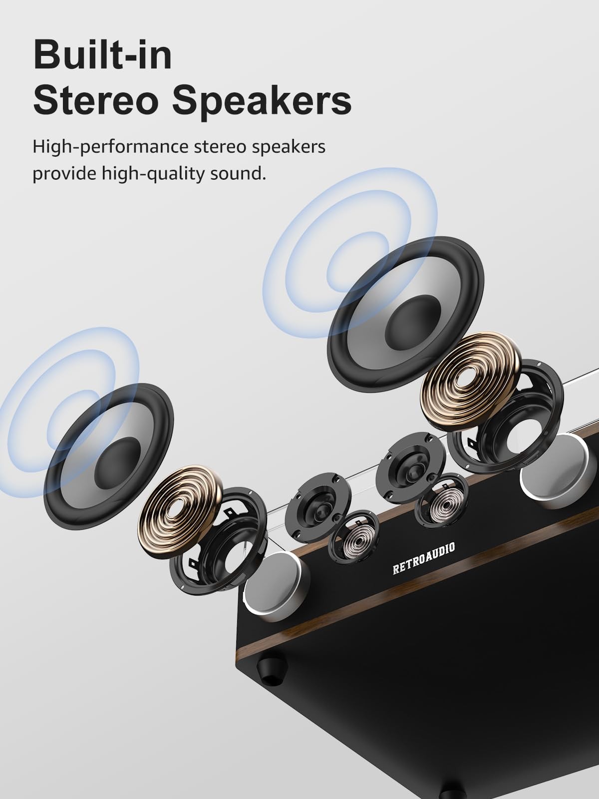 Record Player Turntable with Bluetooth 5.1 Built in Stereo Speakers Belt Drive 3 Speeds Turntables for Vinyl Records Support RCA Output, Aux In, Auto Stop Light Brown 【Bluetooth Record Player】Experience seamless wireless streaming with Bluetooth 5.1 technology. Connect smartphones, tablets to play stream digital music or play vinyl records through the built-in speakers. Perfect for modern vinyl lovers seeking wireless convenience. 【All-in-One Turntable】Enjoy high-performance sound from the built in stereo speakers, or expand your audio setup via Bluetooth, AUX-in, or for louder sound, connect external speaker via RCA cable. Effortlessly switch between vinyl playback and wireless streaming for versatile listening. This turntable support Auto stop play. 【3-Speed Belt-Drive Turntable】Precisely play 7", 10", and 12" vinyl records with adjustable 33 1/3, 45, 78 RPM speeds. Comes with a 45 RPM adapter. The auto-stop function setting stops the record automatically when it reaches the end of the record, better protecting your records. The reinforced turntable effectively prevents vibration caused by playback, restoring the most authentic music for you. 【Retro-Modern Design】Crafted with a premium wood, this turntable blends vintage charm with contemporary style. The dust cover protects your player while doubling as a sleek home decor piece. Turntable with suitable size can be placed in any corner of the home, such as the living room, bedroom, office. 【Ideal Gift & Reliable Support】Designed for intuitive operation, it’s a perfect choice for new music lovers and a thoughtful gift for holidays, birthdays, or vinyl enthusiasts. Includes a 1-year warranty and dedicated customer service for hassle-free support.