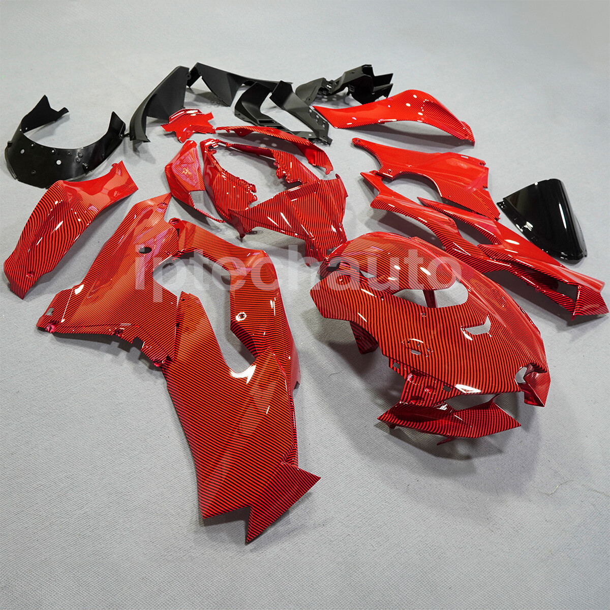 Fitment: For Kawasaki Ninja ZX10R 2021-2025 Description: Condition: 100% Brand New Aftermarket Fairing, NON OEM Material: High quality ABS plastic, good elasticity and heat tolerance, not easy to be cracked. Use same grade OEM bodywork fairing kit ABS raw material. Heat-shield technology adopted. Color: Red Carbon Fiber Painted (as picture shown) Molding: ABS Injection Molded Surface Finish: UV Painted Paint job: High quality paint job with UV paint with 3 layers of clear coat to protect the paint job. Correct tabs and pre-drilled holes to ensure easy and quick installation. Installation: Highly recommend installed by professional. Attention: Fairing Bolts & Installation Instructions are not included. Package Included: 1 x Fairing Set 1 x Heat-shield/windscreen