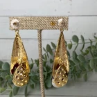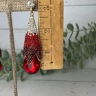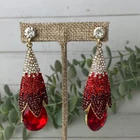 Crystal statement earrings in shades of red. Dangling from a clear crystal stud. Gold tone back Large teardrop is also dangling so there’s deliberate movement. Measures over 3” New unused Please ask any questions prior to purchase.