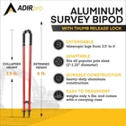 Red Telescoping Bipod, 3.5ft Minimum Height for Accurate Survey Measurements ‹ › ‹ › ‹ › ‹ › ‹ › ‹ › ‹ › ‹ › ‹ › ‹ › ‹ › Red Telescoping Bipod A comprehensive solution for accurate survey measurements Key Features: Heavy Duty Construction: Crafted from high-quality aluminum, this bipod is designed to withstand the rigors of frequent use while ensuring optimal functionality and durability. Compatible with Multiple Brands: Equivalent to Sokkia 724897 and Seco 5217-04, this bipod fits seamlessly into your existing equipment. Versatile Fit: Accommodates 1 to 1.25-inch diameter poles from the side, or 1.5-inch poles through the top, promoting ease of use with a variety of setups. Perfect Height Range: Extendable legs reach up to 6 feet and collapse to a compact 3.5 feet, allowing for diverse surveying needs. Accurate Leveling: Equipped with replaceable pointed feet with spurs for stability, ensuring precise measurements at all times. Effortless Adjustment: Quick release clamps make height adjustments easy and efficient, enabling swift leveling in the field. Why Choose Our Red Telescoping Bipod? When precision matters, our Red Telescoping Bipod is your trustworthy companion in the survey field. Constructed from robust aluminum, this bipod not only promises longevity but also guarantees accuracy with its stable design and adaptative height options. With an impressive extendable capacity and a compact collapse feature, navigating various terrains and tasks becomes seamless. In addition to its superior construction and usability, its striking red color stands out in any environment. Whether you are a seasoned surveyor or an aspiring professional, elevate your surveying experience with this essential tool. Invest in reliability and precision — order your Red Telescoping Bipod today! Shipping Free & Fast Shipping - We offer free shipping to most of the USA with a normal delivery time of 3-7 days. However, due to the current situation, additional delivery time (up to 3 weeks) may be required for some items. Alternative Carriers - We may use alternative carriers (e.g. USPS, FedEx, UPS, etc.) to ensure your package arrives safely and on time. Due to the use of multiple carriers, we are unable to provide a tracking number automatically. Handling Time - Orders are processed and shipped within 1-2 business days of receiving cleared payment. Shipping Restrictions - Shipping to Alaska, Hawaii, Puerto Rico, Guam, and other US territories may incur shipping charges or delivery restrictions. Please contact us before ordering, or your order can be refunded/cancelled. State Restrictions - There may be restrictions based on your state of purchase. For example, certain items may not be shipped to California due to state regulations. Contact for Tracking Updates - If you require tracking updates or have any concerns about the delivery of your order, please feel free to contact us, and we will be happy to assist you. Return 30-Day Hassle-Free Returns - We want you to be completely satisfied with your purchase. If you are not, you can return the item within 30 days of receiving it for a full refund or exchange. Easy Return Process - To start a return, simply contact us and we will provide you with a prepaid return shipping label and detailed instructions. Restocking Fee - There are no restocking fees for returns. However, the buyer is responsible for return shipping costs if the return is not due to a seller's error. Refund Processing Time - Refunds will be processed within 5 business days of receiving the returned item in its original condition. Payment We accept all major credit cards, PayPal, and Apple Pay for your convenience. Your payment information is secure and encrypted to ensure a safe and seamless transaction. Please complete your payment within 3 days of purchase to avoid any delays in shipping. Feedback Your feedback is extremely important to us. We strive to provide the best products and customer service possible. If you are satisfied with your purchase, please take a moment to leave us a positive review. If you have any concerns or issues with your order, please contact us before leaving negative feedback. We are committed to resolving any problems and ensuring your satisfaction. Contact Us If you have any questions or concerns, please feel free to reach out to our customer support team. You can contact us through the eBay messaging system. We are available Monday to Friday, 9:00 am to 5:00 pm EST, and we will do our best to respond to your inquiry within 24 hours. Buy it now and enjoy a pleasant shopping experience! MPN: Surveying_Bipod UPC: Not Set Model: Not Set Unit Quantity: 4 Product: Not Set Brand: Unbranded Country/Region of Manufacture: Not Set Unit Type: lb