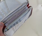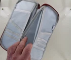 Passport Holder Red Place for pen / pencil - not included Inner pockets / compartments - cardboard to show some of the areas & is not included Zipper closure See pictures for size
