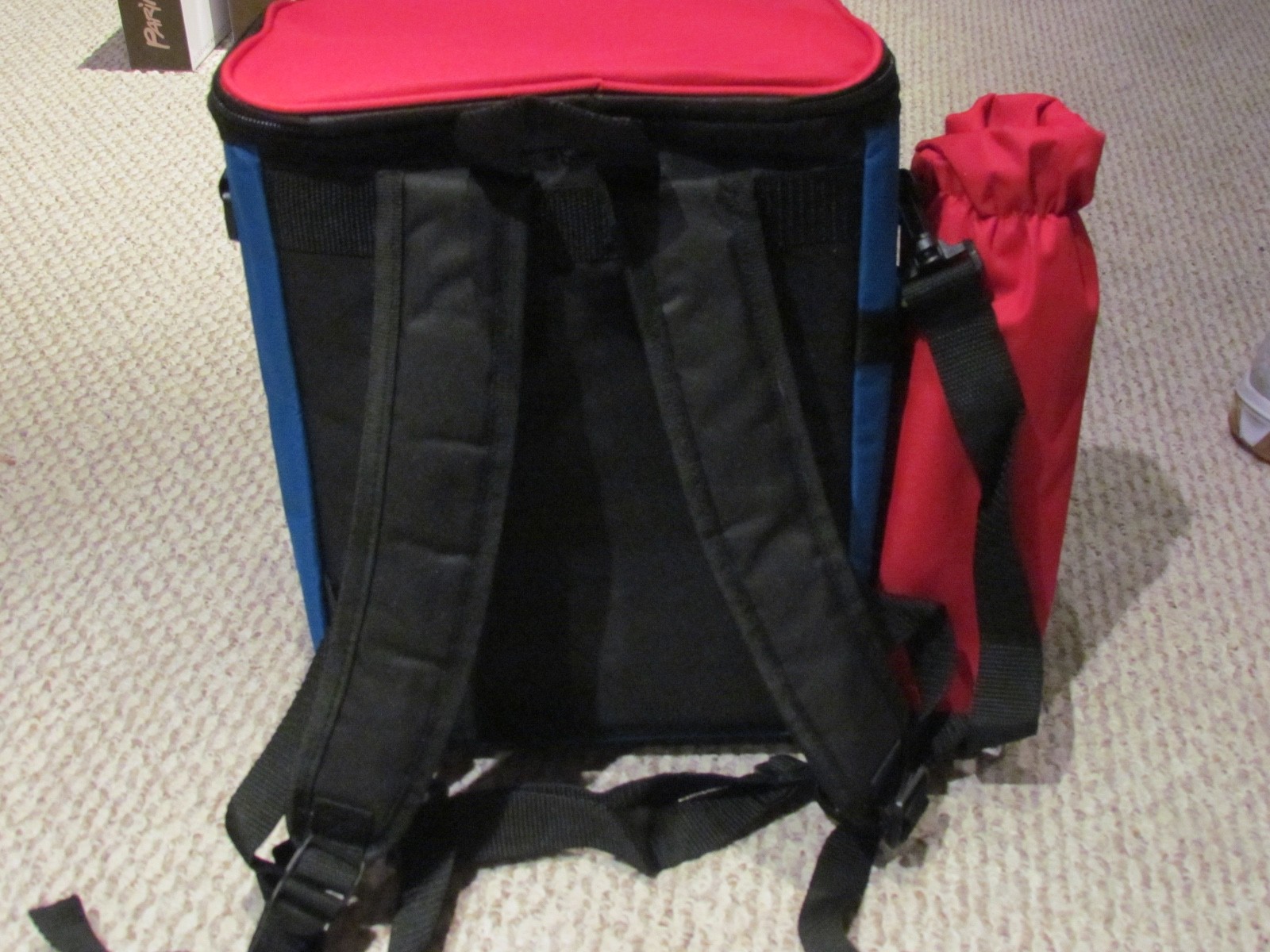 YOU ARE BIDDING ON ONE BRAND NEW BACKPACK COOLER AND PICNIC SET THIS ITEM IS SO CONVENIENT AND COOL IT IS RED WHITE AND BLUE IT IS A BACKPACK IT HAS A PLACE TO KEEP YOUR BOTTLE OF WINE SECURELY IT HAS AN INSULATED COOLER IT ALSO HAS THE FOLLOWING PLASTIC PLATES NAPKINS WINE OPENER CUTTING BOARD 2 WINE PLASTIC CUPS SALT AND PEPPER SHAKERS 2 SPOONS 2 FORKS 2 KNIVES 1 CHEESE SPREAD 1 WINE BOTTLE CORK ITS SO COOL!!! FREE SHIPPING!!