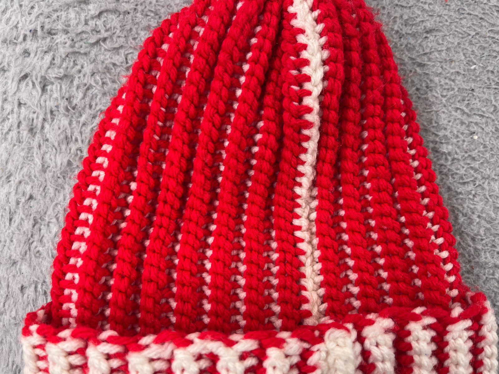 Red White Double Knit Acrylic Blend Adult Beanie with Pom for Snow Ski