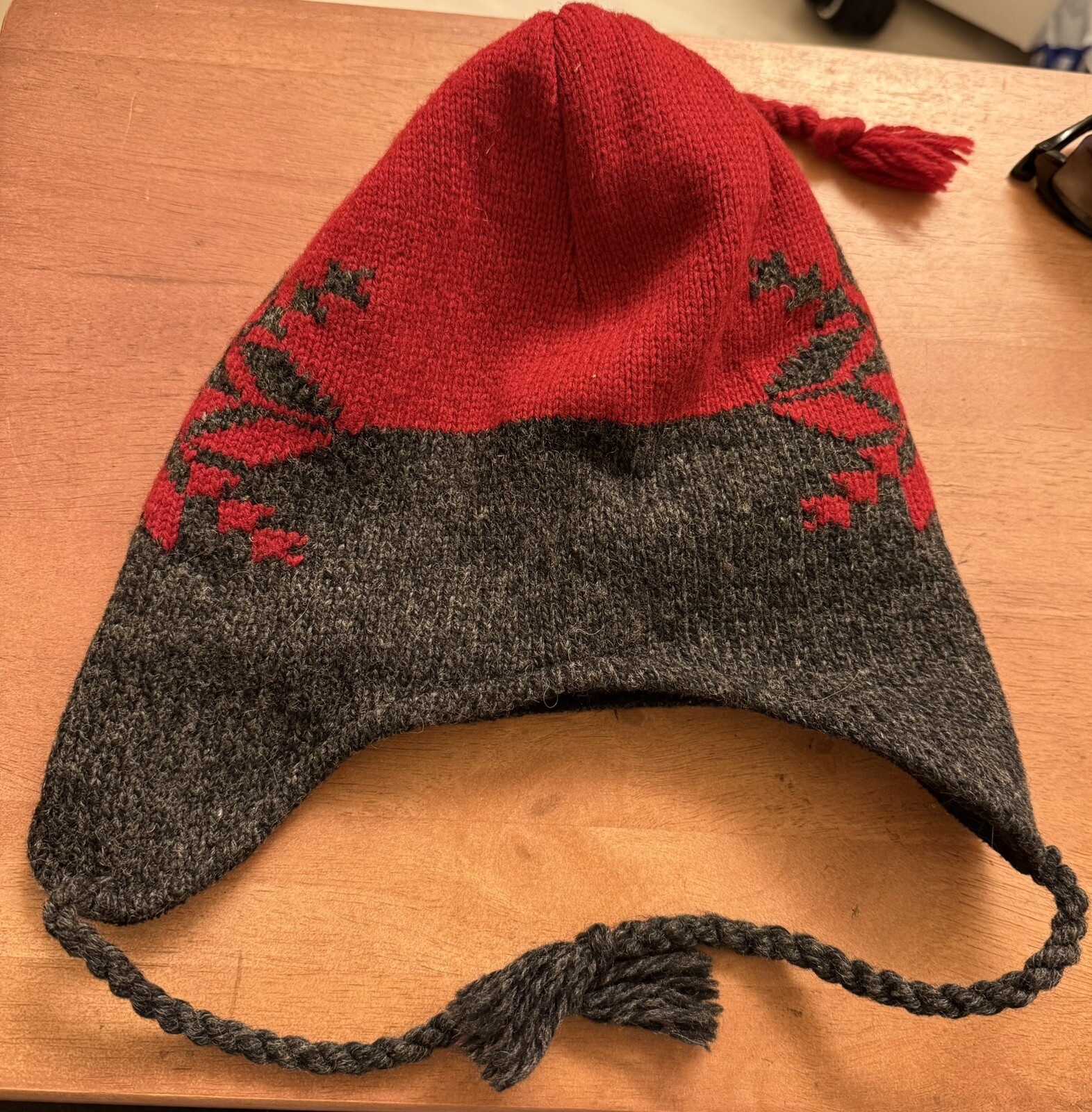 Stay warm and stylish this winter season with this knit beanie hat. Featuring ear flaps and a tasseled accent, this wool blend beanie is perfect for outdoor activities and casual wear. The red and gray snowflake design adds a touch of American and ski-themed style to your winter wardrobe. This beanie is one-size-fits-all and suitable for unisex adults. Made in China, this beanie is a must-have for the fall and winter seasons. Get your hands on this beanie and stay warm and fashionable all winter long! Adult one size fits most