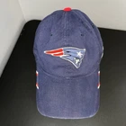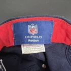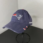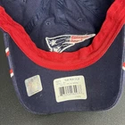 Reebok On Field New England Patriots velcro strap-back hat. OSFA 100% cotton. Embroidered team logo on the front, Reebok on the side, and NFL symbol on the back. Still has stickers on under the bill. Good condition. No holes or tears. Light wear here and there.