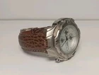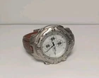 This is a Reebok men's wristwatch with a silver tone stainless steel case and bracelet. It features a white logo dial with stick indexes, a 12-hour bezel, and quartz movement. The watch is water-resistant up to 100m and includes functions such as an alarm and chronograph. The closure is a buckle, and the watch has a snap caseback. It was manufactured between 2000-2009 and comes without papers, service records, original box, or manual. The watch is in excellent working condition. Needs new battery