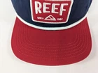 Reef Morter snapback hat. Blue and red adult adjustable cap with Reef patch logo on the front panel and rope on the visor. Material is 100% cotton. There is a scuff mark on the underside of the visor as shown in photos 15 and 16. The scuff mark is not visible when the hat is worn. Brand new with tags. No hassle free returns 60-day return period Most items ship within 1 business day