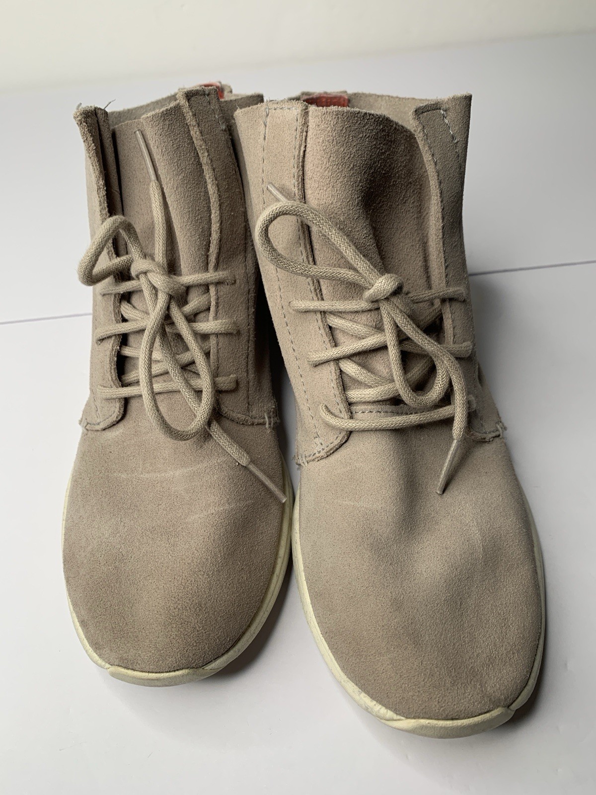 This product is a women's beige bootie sneaker shoe made by Reef. It features a lace-up closure and a flat heel with a height of 1-1.9 inches. The shoe has a cushioned and lightweight design, making it comfortable to wear. It has an embroidered logo accent and a solid pattern. The upper material is made of suede, while the lining and insole materials are also made of suede and foam, respectively. The outsole material is rubber. This product is suitable for casual occasions and can be worn during any season.