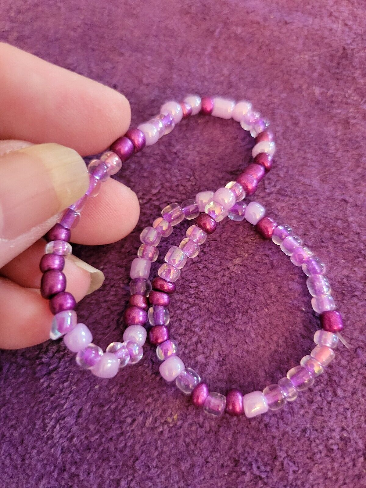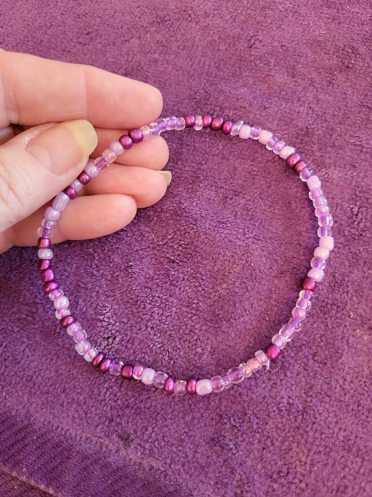 I make ALL of my Anklets in Sizes 9 1/2, 10 1/2, 11 1/2 & 12 1/2. If you need Another Size, just let me Know in the Sales Notes. ~~ 0028900~~ ~Please scroll DOWN to view the entire Listing~ (To use the Magnifying tool to read Tags/Labels and see Closeup views, please choose a picture with your cursor, and then Hold your cursor over the picture. A small magnifying box should appear and will Allow you to see Closeup.) ** Regal Plumb Pearl Bead Beaded Anklet - Energy Life Breath Love - Unique 11 1/2" ** This Anklet is Really Nice, in Excellent Condition, Strung on Strong Elastic for Easy On and Off and a Great addition to Your Wardrobe. Dimensions: 11 1/2" Long Perfect for Yourself or as a Gift! Note to Buyer: I'm sorry postage is so expensive, but I choose to ship your item in a box, so it will arrive undamaged. Also, I Can Create ANY Color Combination of Beads for my Anklets. Just let me know if You Would like a Special Order. No Extra Cost. ~~I'm Great to deal with. Check out my Feedback and my Other Auctions!~~ A+ seller! Super fast shipping, lovely anklet, thank you! I am a repeat customer!!! ~aileen257 Love these ankle bracelets. Shipped fast! ~ikosokar Nice item. Fast delivery. Great communication! ~cinmor99 Item just as described, super fast shipping. Great Ebayer. A++++ ~jennifer315 Please leave Positive & Glowing Feedback and I will be happy to do the same! ~~~~~~~~~~~SMOKE FREE HOME!!~~~~~~~~~~~ Thank you for reading the ENTIRE listing before placing a bid. ~~ Payment MUST be received within 6 days ~~ POLICIES: PLEASE READ BEFORE YOU BID ~Please Ask all Questions BEFORE Bidding - Returns on a Case by Case basis only~ Please read the entire listing BEFORE bidding. **By placing a BID on this item, you are AGREEING to Make Payment and abide by ALL terms, directions & descriptions in this listing.** The Pictures Show the Type of Item you will Receive. The Bead Colors will be the same, but the Bead patterns will be slightly different on the Item you Will receive. Thank Your for Checking out This Listing.