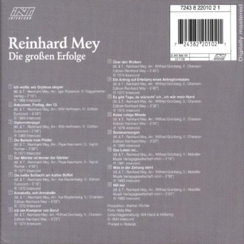 Further Details Title: Die Großen Erfolge Condition: New Format: CD No Of Discs: 1 Country/Region of Manufacture: Deutschland Artist: Reinhard Mey Record Label: Odeon (Universal Music) EAN: 0724382201021 Description: PRODUKTBESCHREIBUNGEN CD: Reinhard Mey,Die groen Erfolge Missing Information? Please contact us if any details are missing and where possible we will add the information to our listing.