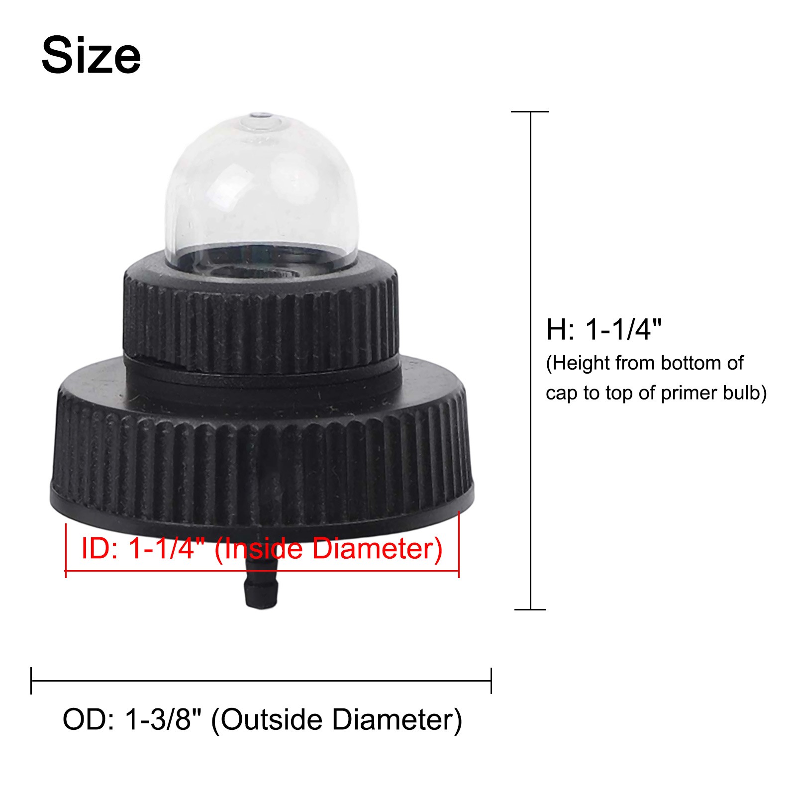 Reliable Fuel Gas Cover for Homelite Chainsaw For Primer Bulb Replacement DESCRIPTION Features: *Replaceable for PRIMER Bulb: This chainsaw gas cap features a replaceable for PRIMER bulb, allowing for easy maintenance and extending the life of your equipment without needing to replace the entire assembly. *Compatibility: Designed to fit for HOMELITE models including for Super 2, XL, 192, 200, and 180, a for versatile solution for various chainsaw users. *User-friendly Installation: The inlet size is 7/64 in, and the design allows for easy fitting; however, trimming may be necessary for a snug fit on the nipple, making installation straightforward. *No Adhesives Used: Constructed without glue or epoxy, this gas cap offers a reliable seal while simplifying repairs and replacements, safety and performance during operation. *Construction: Built to withstand the rigors of outdoor use, this gas cap is designed for longevity, providing a dependable accessory that meets the demands of chainsaw users. Specifications: *Product Name: Fuel Gas Cover For Primer *Material:No *Size: as shown *Color:as shown *Number of Pieces:1/2 Package Content: 1 * Fuel Cover For Primer or 2 * Gas Cover For Primer Note: 1. The real color of the item may be slightly different from the pictures shown on website caused by many factors such as brightness of your monitor and light brightness. 2. Please allow slight manual measurement deviation for the data. POLICES Shipping Payment WARRANTY We only ship to confirmed ebay Order addresses. Please comfirm that your Order address is in line with your shipping address. Please kindly note that the c ombined shipping is not provided because the shipping fee is calculated by weight. Also, the each additional item means exactly the the same color and size. It takes about 7 -15 working days to US; about 10-30 working days to other countries. Transit time may be a little delayed because of the bad weather and customs inspection . If you do not receive your item within 30 working days since payment finished, please contact us immediately for further assistance. Payment must be completed within 5 days. If you have any problems about payment, please contact us via ebay message. We strive for 100% customer satisfaction! Positive Feedback is very important to us. If you have any questions, p lease feel free to contact us via "Ask seller a question" . We will reply your email within 24 working hours.