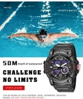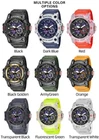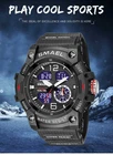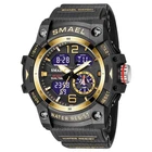 Reloj Deportivo para Hombres Resistente al Agua Buceo Luminoso de Cuarzo Digital • High Water Resistance : The SMAEL sport watch boasts a high water resistance depth of 5Bar, ensuring durability and reliability in various environments. • Acrylic Material : Crafted from acrylic, this wristwatch features a robust case that guarantees longevity and withstands daily wear and tear. • Sporty Style : With its sporty style, this digital wristwatch is perfect for active individuals, offering both function and fashion. • Dual Time Display : Equipped with a dual time display, this watch allows for precise timekeeping and convenience. • LED Back Light : The LED back light provides clear visibility in low light conditions, making it an ideal choice for night use. • Buckle Clasp : The buckle clasp ensures a secure fit, making it resistant to accidental slips and providing ease of use. Product description: 1. Brand: SMAEL 2. Dual time shows with LEDbacklight function 3. 50M Water Resistant 4. Type: Men Sports Watches 5. Movement: Japan Original Digital Movement 6. There are 9colors for selection 8. Band Width: (approx) 2.2cm 9. Dial Diameter: (approx) 5.0cm 10. Strap Material: Strong PU 11. Case Material: strong rubber + high strength hardened glass 12. Clasp: Buckle 13. Showing precise time 14. It is good gift for someone special Note: we suggest you not wear it when swim .but if you go to swim or dive , pls don't press any button underwater! Components Included: -1 x Genuine SMAEL Watch -1 x Use Manual