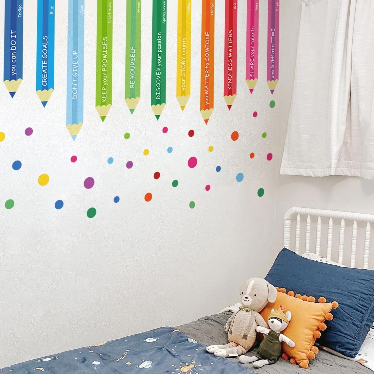 Removable DIY Color Pencils Wall Decals Watercolor Colored Dot Wall Stickers Vinyl Wall Inspirational Quotes Art Stickers for Kids Bedroom Living Room Classroom Playroom Home Wall Decor Product Details Color: B Brand: DRWSSR MPN: 1 UPC: Does not apply EAN: Does not apply Brand: DRWSSR Color: B Recommended Uses For Product: Wall Theme: Cartoon Cartoon Character: Removable Special Feature: Removable Unit Count: 1.0 Count Number of Items: 1 Brand: DRWSSR Color: B Recommended Uses For Product: Wall Theme: Cartoon Cartoon Character: Removable Special Feature: Removable Unit Count: 1.0 Count Number of Items: 1 Package Dimensions: 11.81 x 11.34 x 1.34 inches Item Weight: 2.08 ounces Manufacturer: DRWSSR Country of Origin: China Item model number: 1 Date First Available: October 31, 2024 Material: Our pencil wall stickers are made of PVC material, will not fade, have no peculiar smell, removable.Perfect for children's room decoration, can use them for a long time. The packaging includes: You will receive one sheet with a size of 30 * 60cm (11.8 * 23.6inch) and a finished size of 65 * 40cm (25.59 * 15.74 inch), which can be adjusted according to your needs and preferences. Easy to use: Just peel them off, then paste to the place you want, with no residue left behind.It can stick to any smooth and clean surface removable and repositionable, will not damage any surface. To prevent curling after gluing, It can be flattened under a heavy object before use. Wide uses: These daycare wall stickers can meet wide application for living room, playroom, nursery,bathroom, bedroom, classroom,doors, glass windows,etc. Important Tips: If the wall is dusty, the kids room stickers will fall off. To prevent curling after sticking, put the kids wall stickers under the weight and flatten them. These wall decals can be widely applied to most of smooth, flat, dry and clean surfaces. CHOOSE DRWSSR!!! Specifications: Material: PVC Quantity: 1 sheet Size: 30 60cm (11.8 23.6 inches) Application: Kids Room, bedroom, living room, baby nursery kindergarten, and anywhere else How to use: 1. Choose a smooth, clean, dry surface. 2. Plan the location of the wall stickers. 3. Cut the decal into pieces (if desired). 4. Tear off the white backing paper. 5. Place the adhesives on a flat surface without pressing them so they can be withdrawn and repositioned 6. Carefully press the wall decal to the wall with a soft cloth or credit card, squeezing firmly to force out any air bubbles. Warm Tips: 1. Ensure the surface is smooth, dry, clean free from dust. 2. To reposition, please slowly and gently peel it off and the apply. Instant off may affect the wall paint. 3. The hair dryer wind will be very useful when you want to remove. 4. Due to lighting and monitor, there maybe some color difference. 5. We measure the goods by hand, so 1-2cm errors is normal, thanks!